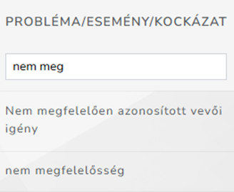 A beírt kifejezés lehet egy részlete a keresett szövegnek, azonosítónak, megnevezésnek vagy akár teljes is. A szűrés kis és nagybetű között nem tesz különbséget.